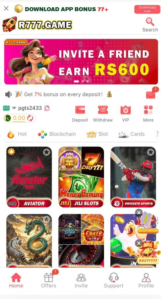 R777 provides simple deposit and withdrawal options. Users can add funds using available payment methods inside the app. Withdrawals can be requested after meeting the minimum withdrawal requirement. Processing time may vary depending on the selected payment method.